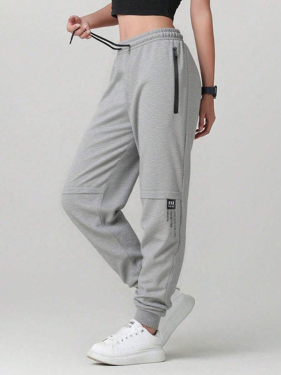 Women'S Solid Color Pocket Zipper Casual Loose Pants, Versatile For Daily Wear, Hiking, Running, Cycling, Autumn/Winter Tights