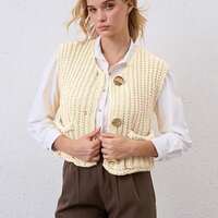 Women Crochet Knit Sweater Vest Button Up Cropped Casual Sleeveless Vest Fashion Vintage Cardigan With Pocket