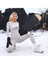 InnovistaInnovista Women's Solid Color Minimalist Everyday Zip-Up Long-Sleeve Ski Jacket Women's Fleece Two-Piece Sports Suit – Soft Long-Sleeve Crop Top And High-Waisted Leggings Warm, Breathable, And Stretch Sportswear For Autumn Exquisite Design, Suitable For Yoga, High-Intensity Interval Training, Running, CrossFit, And Outdoor Sports Versatile Casual Sportswear, From Office To Gym Fleece, Utilitarian Chic ,Essentials Hoodie