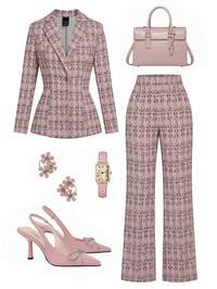 Elenzga Women's Suit Set, Suit Fabric, Lapel Collar, Long Sleeve, Waist Cinched A-Line Asymmetric Hem, Metal Button Decor, Sophisticated & Elegant For Office, Commute, Street Style, French Romantic, Casual, Middle Eastern Vintage, Afternoon Tea, Party, Thanksgiving, Back To School, Spring/Autumn/Winter#10 Bestseller