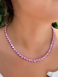 TopJewels1 pieza Collar de tenis con forma de corazón rosa de circonita cúbica de moda, joyería de fantasía chapada en oro rosa con cristal CZ para mujer, accesorios para boda, compromiso, fiesta, baile de graduación, novias, damas de honor, damas, novias, esposa, regalo para hijas