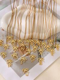 U Charming1 pieza Collar con colgante de lazo de letra 26 de acero de titanio, estilo bohemio, creativo, elegante y de lujo, adecuado como regalo para hermanas, parejas, ceremonia de graduación o fiesta, también adecuado para uso diario, citas, fiestas, vacaciones y playa de verano