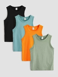 PipplinSHEIN 4pcs/Set Young Boys' Comfortable, Breathable, Cool And Sweat-Wicking Basic Sleeveless Crew Neck Knit Tank Tops, Suitable For Daily Wear, Sports, Outings, School, Gatherings, Holidays, Photoshoots, Back-To-School Season, Spring/Summer #7 Bestseller