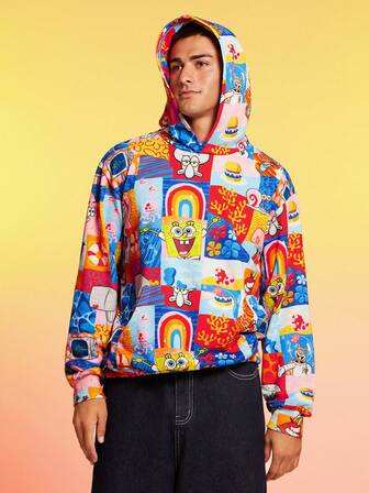 SpongeBob SquarePants | SHEIN Plus Size Casual Cartoon & Letter Graphic Hooded Sweatshirt, Autumn