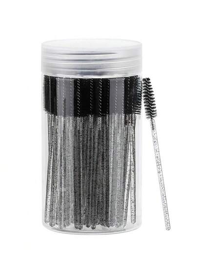 100PCS Crystal Pink Eyelash Brushes, Mascara Wands With Container, Bendable Disposable Eyebrow Spoolies, Lash Brush For Lash Extensions, Eyebrow Spoolie, Castor Oil Brushes,Eyebrow Brush,Eyeshadow Brush,Spoolie,Spoolie Brush