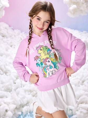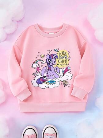 My Little Pony X SHEIN Young Girl Casual Cute Horse Print Crew Neck Sweatshirt Fall Winter