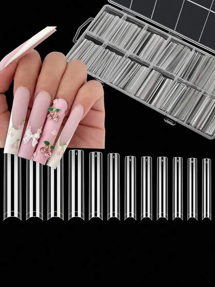 240Pcs/Box 3Xl Clear Half Cover False Nail Tips For Acrylic Nails Professional Extra Long Tapered Square Straight Press On Gel Nail Tips For Nail Salon Nail Supplies Nails
