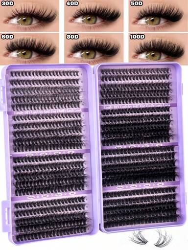 800PCS Individual Lash Clusters Large Capacity 30D+40D+50D+60D+80D+100D D Curl 8-16mm DIY Lash Clusters Natural Look&Extra Thick&Wispy&Ultra Soft&Super Light Reusable Individual Segmented False Eyelashes Eyelash Extension Kit Suitable For Travel, Daily Wear For Beginners, Weddings, Dates, Parties, Festivals, Very Suitable For Christmas/Halloween/Gift Eyelash Bundles
