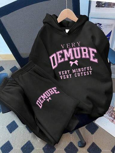 2PCS Girls Sweet - Cool Letter Hoodie Set, Soft Skin - Friendly, School Daily All - Season Wear