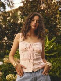 Aralina Boho Lace Detail Tie Shoulder Elegant Feminine Vacation Top