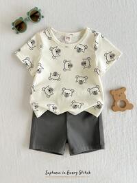 Cozy PixiesCozy Pixies Conjunto deportivo de verano para niños y niños pequeños, con camiseta de cuello redondo de punto suave con estampado de letras y pantalones cortos de cintura elástica, adecuado para partidos, deportes, competiciones, baloncesto, fútbol, tenis de mesa, béisbol, bádminton, juegos de pelota, correr, deportes casuales, juegos al aire libre