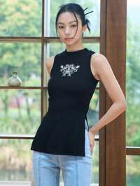 DAZY Embroidery Split Hem Tank Top
