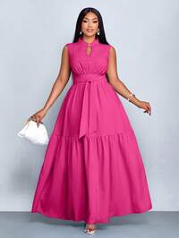 MaweiiMaweii Vestido sin mangas con lazo en el cuello y estampado de lunares blanco y negro, talla grande talla, de tela suave y fluida, para la primavera/verano. Falda larga plisada, ajustada y acampanada, con cintura anudada. Adecuado para reuniones casuales de moda, citas románticas, té de San Valentín, ceremonias de graduación, viajes relajantes, vacaciones en la playa, salidas urbanas, bodas románticas y atuendo elegante de invitado: estilo retro elegante, vestido de moda minimalista de talla grande.