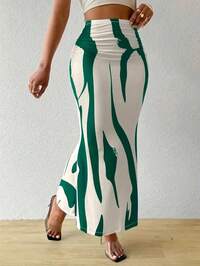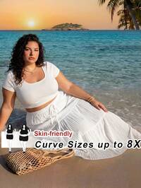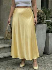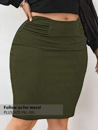 SHEIN SXY CURVESHEIN SXY Plus Size Women Spring-Summer New City Resort Solid Color Ruched Waist Asymmetrical Hem High Slit Sexy Skirt, Suitable For Beach Vacation, Date Night, Birthday, Bachelorette Party, Cute, Casual, Shopping, Streetwear, Going Out, Easy To Match & Looks Slim, Accent Your Body, Flatter The Figure #10 Bestseller