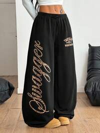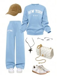 SHEIN Leap Crew Autumn Camouflage Tree Branch & Leaf, Sports Numeric 98 Print, Retro Sweet American Campus Style, Mesh Lady, Citywalk Street Vibe, Casual Campus Sports, Tween Girls Knit Crew Neck Letter Graphic Loose Sweatshirt And Flare Pants 2 Pieces Set, Streetwear Vintage, Easy Comfort, Autumn Layers For Kids, 2000s Style, Y2K Clothes, Winter Clothes, Tracksuit Fall #4 Bestseller