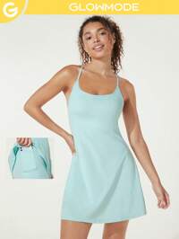 GLOWMODE Built-In Shorts Hidden Pocket Solid Active Dress Low Impact Yoga Pilates Daily Summer