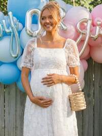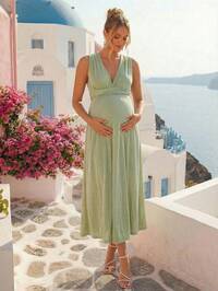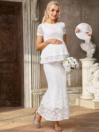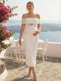 Cheriluna MaternityElegante vestido de maternidad romántico, vestido largo de ajuste ceñido con cuello asimétrico, adecuado para fiestas, vacaciones en la playa, regreso a la escuela, citas románticas, temporada de bodas, cumpleaños, Pascua, primavera/verano, vestido formal de invitado de boda para otoño