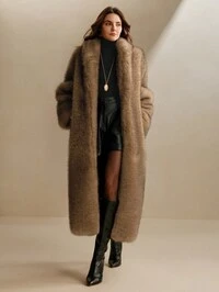 Firerie Thick Loose Oversized Faux Fur Collar Long Coat, Lined, Vintage Luxury Extra Long Jacket, Apricot Fuzzy Long Sleeve Outerwear, Apricot Faux Fur Coat, Suitable For Wedding, Party, Holiday, Spring/Autumn/Winter, Elegant, Commute, Date, Party, Graduation, Performance, Concert, Work, Annual Meeting#8 Bestseller