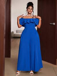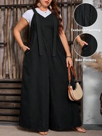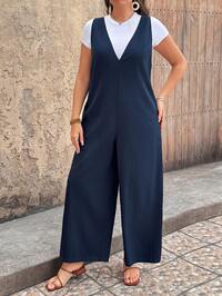 EMERY ROSE CURVEEMERY ROSE Plus Size Women's Summer Casual Vacation Solid Military Green Short Sleeve Jumpsuit With Pockets,Early Spring,Spring Break Outfits ,Vacation Outfits Women ,Holiday Outfits For Women,Spring Clothes Women,Going Out Outfits,2026 New Clothes,Simple And Fashionable For Everyday Wear,Boho Jumpsuit,Wide Leg Capri Jumpsuit ,Comfortable And Breathable