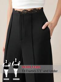 SHEIN PETITE CURVESHEIN PETITE CURVE New Plus Size Women's Petite Girls Solid Color Waist Contrast Lace Pocket Wide Leg Elegant Pants Straight Leg Elegant Commuter Pants,High-Waisted Makes You Look Slimmer And Your Legs Longer, Suitable For Petite Women.High-Waisted Makes You Look Slimmer And Your Legs Longer, Suitable For Petite Women.Suitable For All Seasons And Occasion,Suitable For Petite Girls& Women, Summer Pants Summer Summer Pants Summer Outfits Summer Holiday Outfits Long Summer Pants For Women Spring Outfit ,Wide-Leg Pants,Office Pants,Pants,Elegant Pants,Casual Pants, High-Waisted Slimming Wide-Leg Pants For Summer,Elegant Women's Ceremony Pants ,Elegant Pants For Party,Elegant Pants For Ladies,Elegant Long Pants, Vacation Outfits Women,Holiday Outfits For Women,Summer Holiday Outfits,Summer Vacation Outfits,Casual Pants For Women ,Casual Pants For Women
