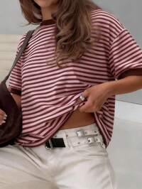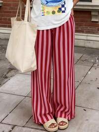 Autumn Holiday , Autumn/Winter Series, Street Style, Versatile, Retro Autumn , Lightweight Pants, Standalone Pants, Holiday , Bohemian Style, Contrast Striped Pattern, Pink Casual Wear, Pocket Drawstring Design, Comfortable Casual, Elegant Romantic, Urban Chic Women's Casual Pants Vacation Spring