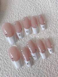 FIRSTER10Pcs Handmade Nail Art, Ballet French Simple High-Grade Sparkling Rhinestone Design Nail Art, White Texture Press Type Fake Nails, High-End Cool Nail Art, Unique Elegant High-End Nail Art, Luxury Minimalist Design Nail Art, Spring, Summer, Autumn, Winter Four Seasons Full Coverage Fake Nail With Jelly Glue And Nail File. Add To Your Festive Atmosphere. Nail Art For Daily Use, Suitable For Women And Girls, Detachable And Reusable. Nail Supplies Nails #1 Bestseller
