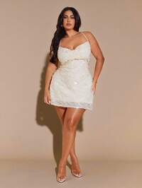 SHEIN BAE CURVESHEIN BAE Vestido de mujer talla grande de primavera y verano con cuello en V y cuello halter, de tela texturizada de gasa, vestido de Pascua, atuendo de graduación, atuendo de club sexy para mujeres, atuendo de primavera para mujeres, ropa de verano, atuendo de noche de vacaciones, atuendo de cumpleaños para mujeres, atuendo de boda, atuendo de vacaciones para mujeres, concierto #4 Más vendidos