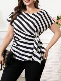 SHEIN Clasi Plus Size Women Striped Round Neck Batwing Short Sleeve Side Knot Casual Shirt Summer Dresses For Women,Summer Clothes, Summer Outfits For Women, Spring Outfit Women,Spring Clothes Women, Spring Dress Women,Festival Outfits For Women,Beach Outfit For Women,Weddings & Events,Graduation Outfit For Mother,Graduation Ceremony,Going Out,Ball Gown,Birthday Outfits For Women, Holiday Outfits For Women, Summer Holiday Outfits,Vacation Plus Size Short Sleeve Tops Black And White Tops Women Stripe Top Plus Size Casual Tops Plus Size Women Clothes Tops #7 Bestseller
