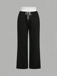 SHEIN Qutie Color Block Women's Tie Waist Long Pants