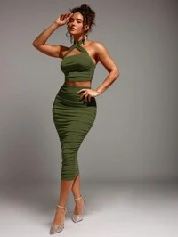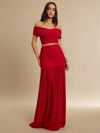 SilqueeSilquee This Romantic, Solid-Color, Off-The-Shoulder, Cross-Over Pleated Mesh Top Paired With A Pleated A-Line Midi Skirt Is Perfect For Spring And Summer. Suitable For Various Occasions, Including Valentine's Day Dresses, Dates, Garden Parties, Picnics, Nightclub Parties, And Elegant Dinners. The Fitted Cut Accentuates The Figure And Showcases Feminine Charm. Elegant And Captivating, It's The Perfect Choice For Valentine's Day, And Also Suitable For Vacations, Beach Trips, Parties, Banquets, Weddings,