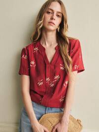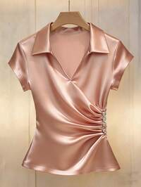 Rafferiza Blusa elegante y casual para mujer, perfecta para uso diario, cuello en V, mangas con doble volante, ajuste en la cintura, cintura plisada, silueta en forma de X, diseño de bajo asimétrico. Primavera/Verano, casual, commuting, San Valentín, Carnaval, playa, fiesta, cumpleaños, uso diario