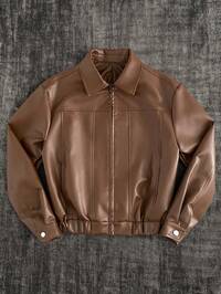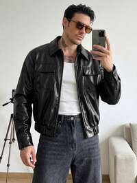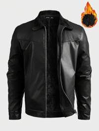 GENTILAND Men's Solid Color Long Sleeve Zip-Up Collar Utility Pocket PU Leather Jacket Mens Leather Jacket Mens Cropped Jacket Black Leather Jacket Men Mens Casual Jacket Cropped Men Jacket