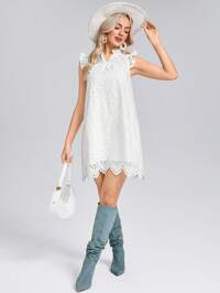 SHEIN LUNE Summer Western Rave Outfit Concert Outfit Women Women's Asymmetric Hem Ruffle Sleeve Casual Work Dress, Suitable For Wedding Guests, Business & Leisure Occasions, Autumn