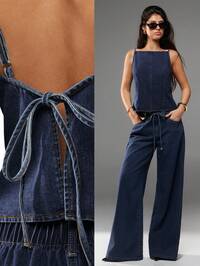 en Plano Conjuntos de dos piezas de mezclilla para chicas jóvenes
