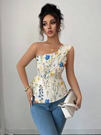 ElenzgaElenzga Blusa elegante de mujer con estampado floral asimétrico y volantes, con diseño de cintura ceñida para acentuar las curvas y exudar sofisticación refinada. Adecuado para diversas ocasiones, desde atuendo formal de trabajo y viajes, hasta un estilo francés sexy y romántico, salidas casuales, vacaciones, eventos con temática vintage de Oriente Medio, reuniones de té de la tarde acogedoras, fiestas glamorosas, así como celebraciones de Año Nuevo, Acción de Gracias y Navidad.